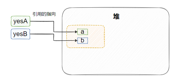 因此最终外面的 yesA 指向的还是 a,yesB 指向的还是 b。